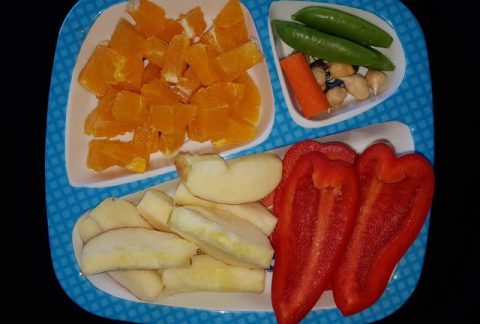 Fast food. Not just for kids, for adults too. Alkaline and great help for detoxing junk out of the body. An apple, an orange, red pepper, snap peas, soaked n …